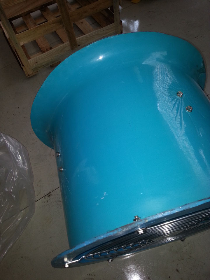 风机特点 *风量大,噪音低,结构简单,坚固耐用; *风叶优化设计,色彩柔和光鲜,持久不易褪色; *电机采用100%铜线铸造而成,经久耐用; *广泛适用于车间,仓库,办公楼,住宅等场合的通风换气,也可在较长的排气管道内间隔安装,以提高管道中的风压。 风机安装说明 1、安装前应详细检查风机是否有损坏变形,如有损坏变形,待修理妥善后,方可进行安装。 2、安装时要注意检查各联接部分有无松动,叶片与风筒间隙应均匀,不得相碰。 3、联接风口管道的重量不应由风机的风筒承受,安装时应另加支撑架。 4、在风机风口端必须装集风器,并希望安装防护网。 5、风机底座必须与地基平面自然接合,不得敲打底座强制联接,以防底座变形,安装时应校正机座,加垫铁片,基本保持水平位置,然后拧紧地脚螺栓。 6、安装完毕后,必须先进行实验,待运行正常后,才允许正式使用