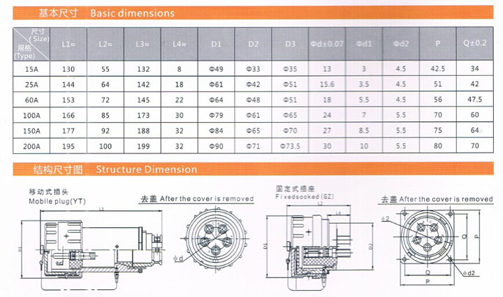 额定电流:15A、25A、60A、100A、150A、200A