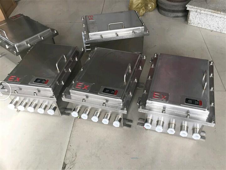 产品证件齐全!用户可放心购买。可按用户具体要求出图纸设计定做。也可根据您的需要为您提供任何专业技术及价格方面的咨询,欢迎致电详询! 不锈钢防爆接线箱适用场所: 1.1区、2区或20区、21区、22区危险场所。 2.IIA、IIB、IIC类爆炸性气体环境或可燃性粉尘环境 3.强腐蚀气体环境 4.户内,户外(IP65) 不锈钢防爆接线箱产品特点: 1. 不锈钢防爆接线箱外壳采用不锈钢板加工成型,外型美观。 2. 具有较强的防腐蚀,防水,防尘性能。 3. 壳体有各种规格,可根据电流,接线端子数及出线口数选用单壳体或单壳体的组合形式以满足需要。