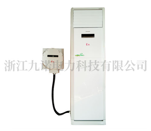 防爆空调器结构与工作原理简介 1、5P防爆空调立柜式IIC级主要结构 空调机主要由以下部件组成 1.1室内机 2.2室外机 3.3连接部分 如图1所示 2、5P防爆空调立柜式IIC级工作原理 当室内、外机用汽、液连接配管相连后,便构成制冷(热)循环系统。 当室内、外机用电气连接相连后,便构成整套防爆电气控制电路。 2.1制冷工作原理 机组接通电源,设定制冷状态后,压缩机开始工作,从室内侧热交换器(蒸发器)吸入低温、低压制冷剂,经压缩成高温、高压气体,进入室外侧热交换器(冷疑器)中冷凝成液体。经节流,压力、温度降低的制冷剂进入室内侧热交换器(蒸发器)中进一步蒸发、汽化,吸收室内热量,再通过吸汽管进入压缩机,从而完成一个制冷循环。如此周而复始,达到制冷目的。 2.2制热工作原理 机组接通电源,设定制冷状态后,压缩机与电磁换向阀同时开始工作,从室外侧热交换器(蒸发器)吸入低温、低压制冷剂,经压缩成高温、高压气体,进入室外侧热交换器(冷疑器)中冷凝成液体,同时向室内放出热量。经节流,压力、温度降低的制冷剂进入室外侧热交换器(蒸发器)中进一步蒸发、汽化,吸收室外空气中的热量,再通过吸汽管进入压缩机,从而完成一个制热循环。如此周而复始,达到制热目的。